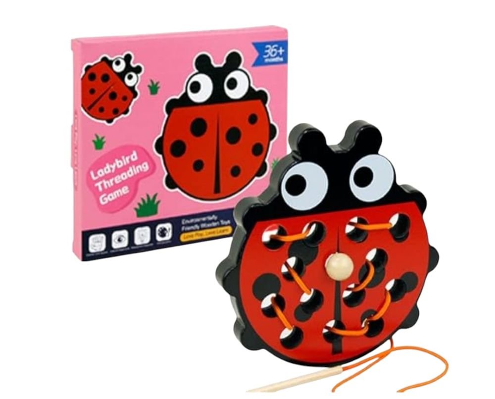 Juguete Montessori de madera para enhebrar.