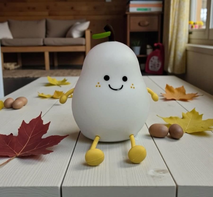 Cuenta con una suave luz LED blanca cálida con control táctil, diseñada para uso en interiores y habitaciones infantiles.